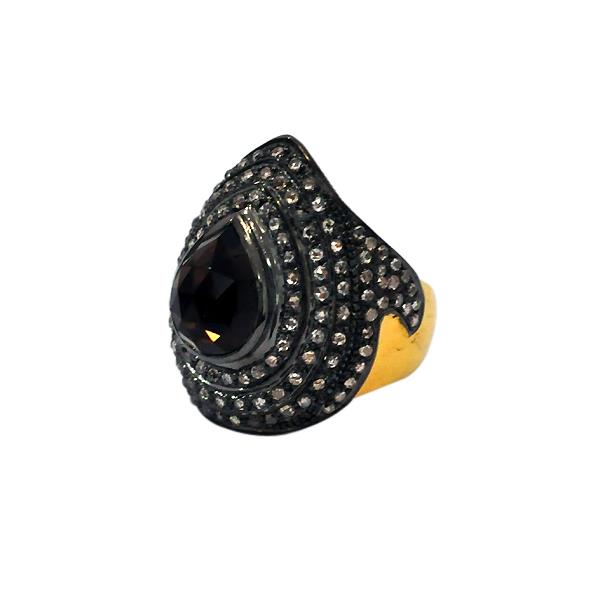 3.3ct Smoky Quartz Diamond Vintage Look Black Ring 925 Sterling Silver