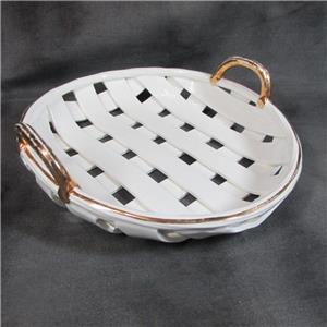 Very unique plate. Heavy latticework with each bank about 3/4" wide. It is impressed signed on back but cannot make out maker. Probably dates from the 1950's-60's. Thank you for looking.
