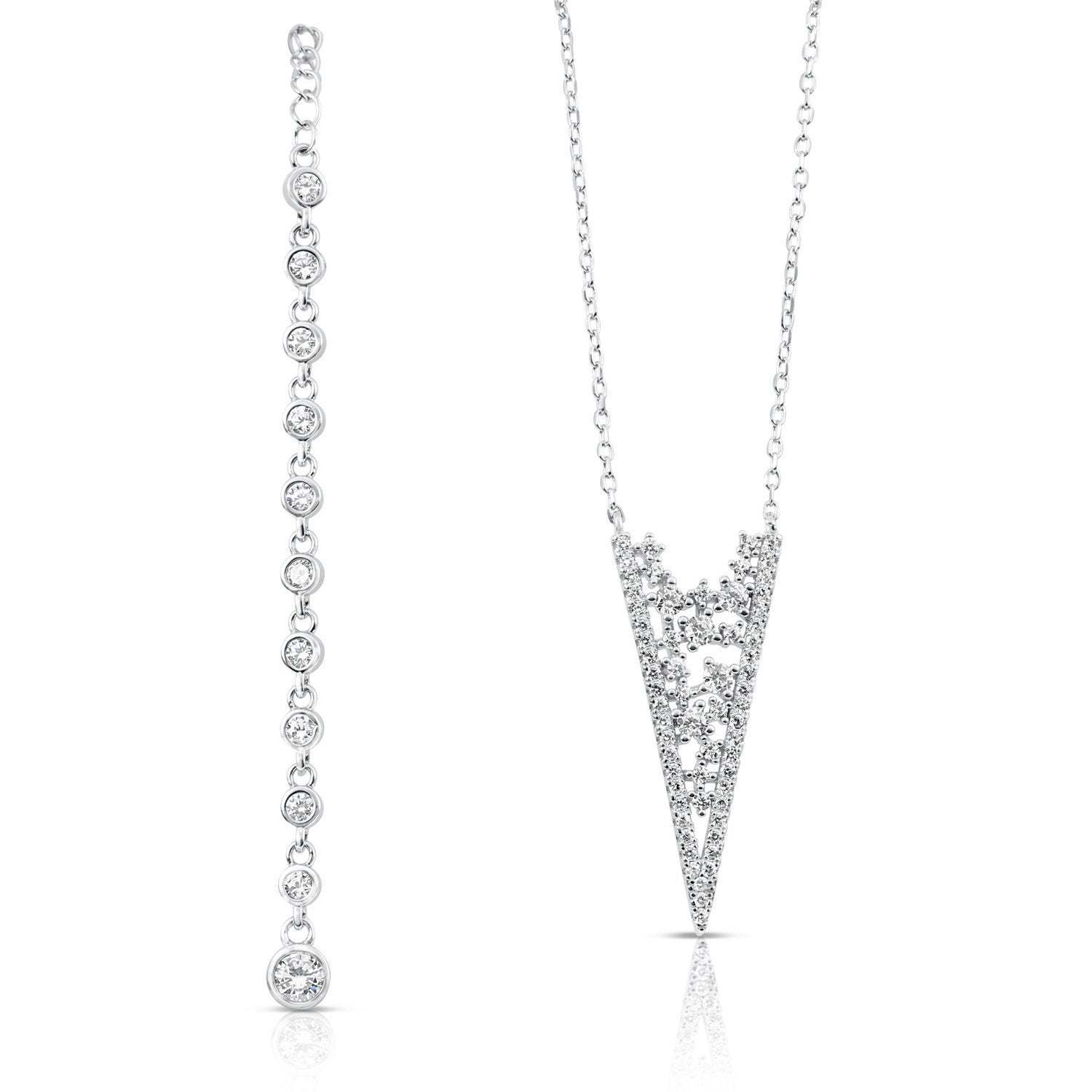 TILO Jewelry Solid 925 Sterling Silver Pave Triangle Pendant Necklace with Simulated Diamond CZ Stones Love Friendship Minimalist Dainty V-Shape Charm Pendant Chain Necklace Handmade Fine Jewelry Gift for Women, Girls, Unisex