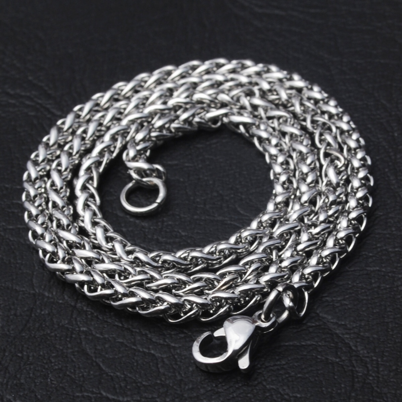 Wholesale Price Stainless Steel Silver Wheat Braided Chain Necklace Men's Gift