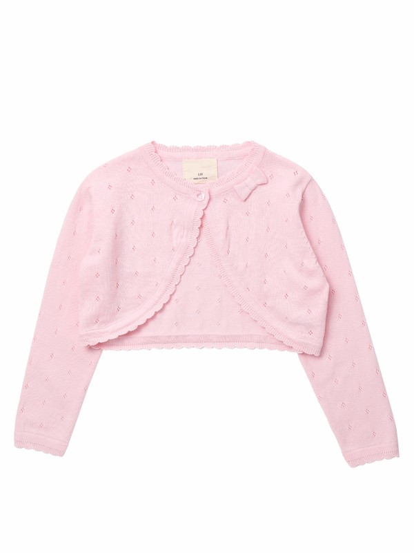 Kids Girls Long Sleeve Bowknot Knitted Hollow Out Rhombus Pattern Single Button Closure Crochet Cardigan.