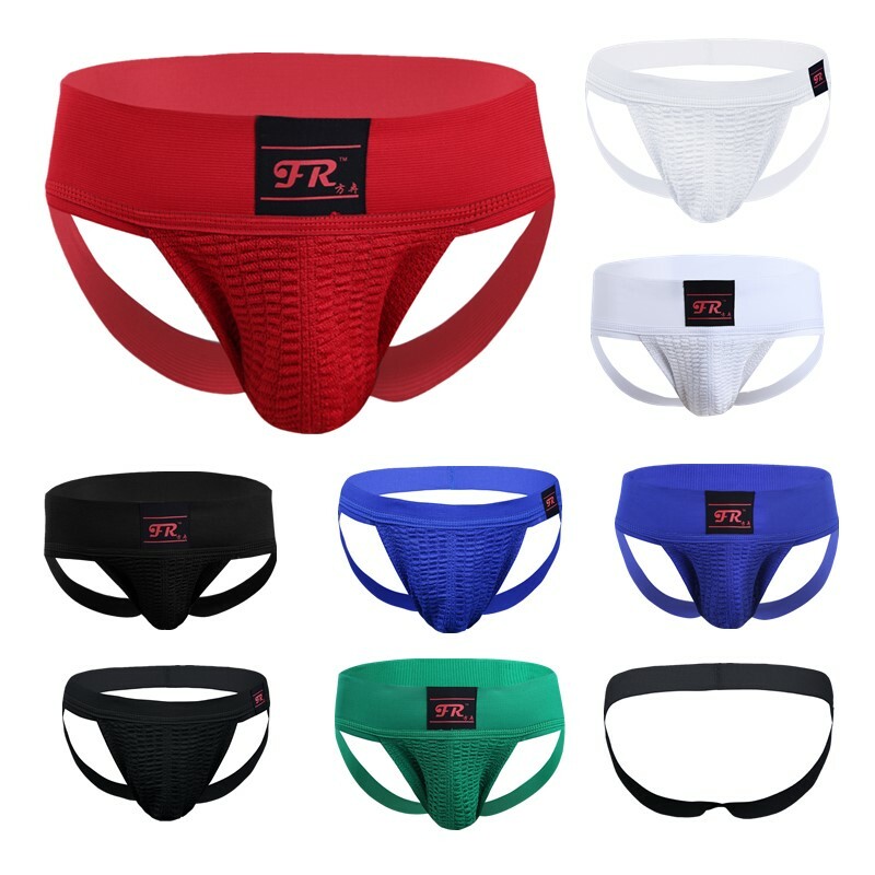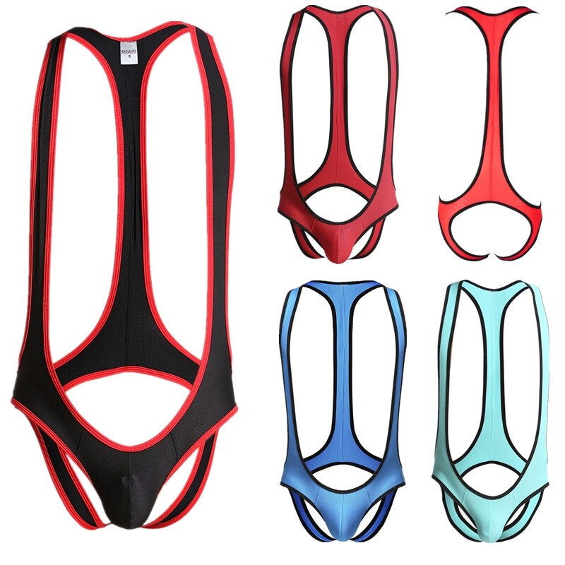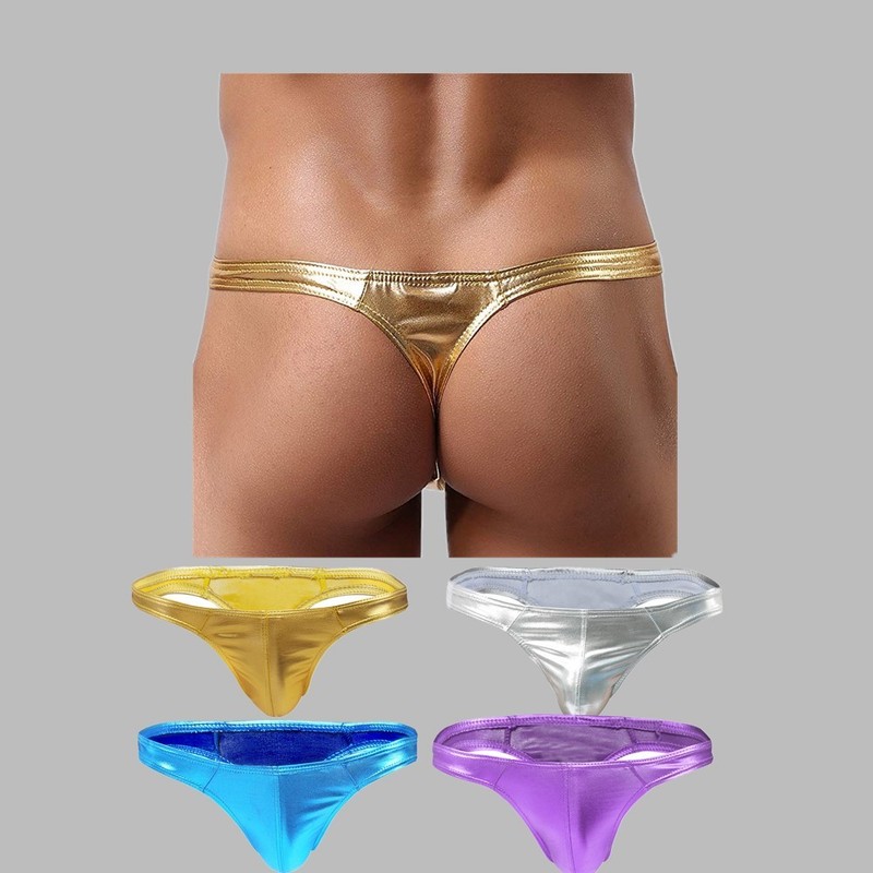 Men’s bikini briefs thong underwear, high cut and open butt style.