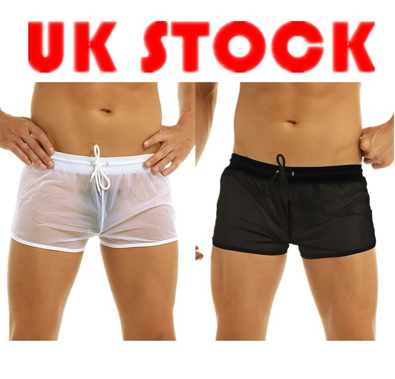 Men's See Through Mesh Boxer Shorts Beach Boardshort Drawstring Swimming Trunks