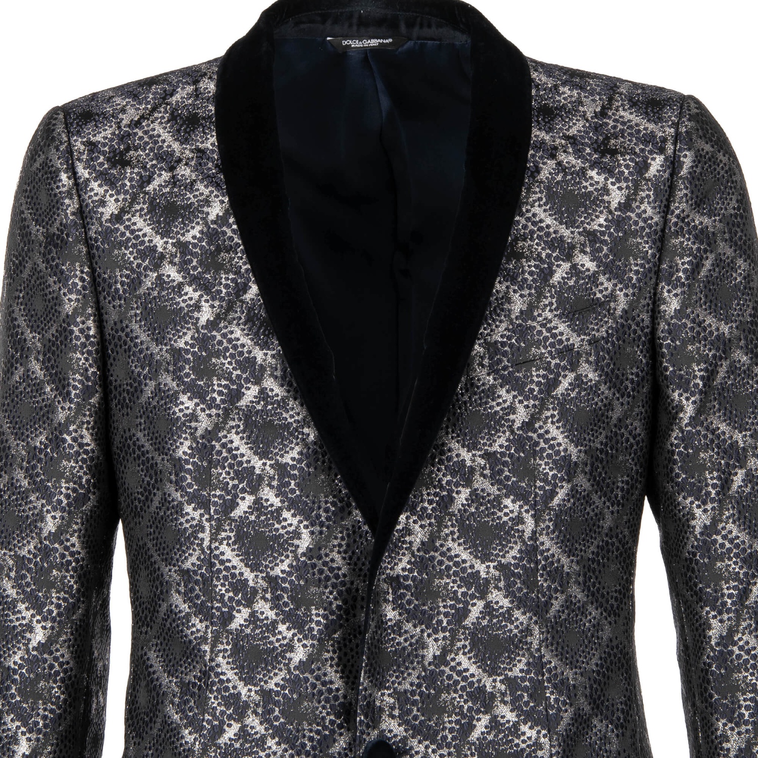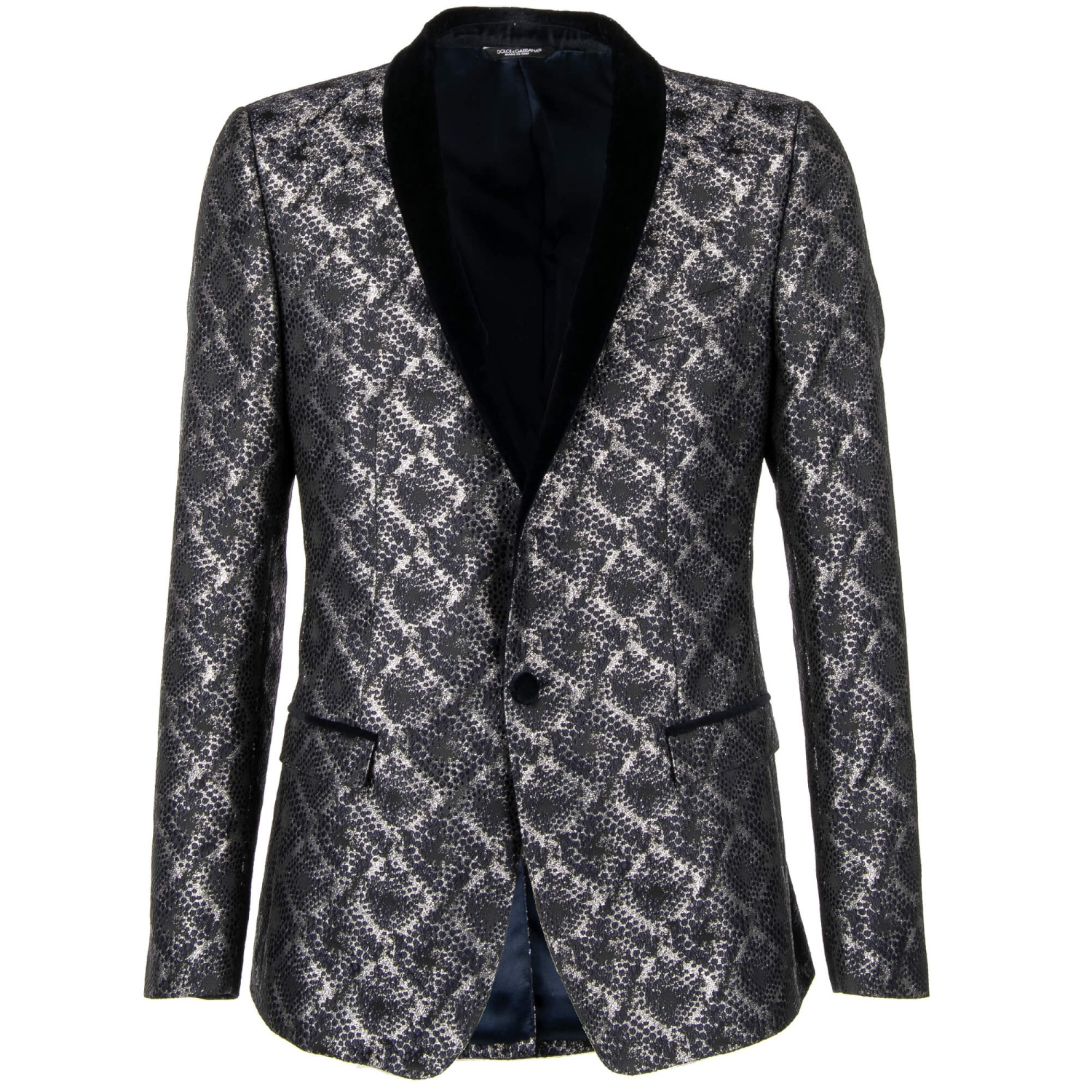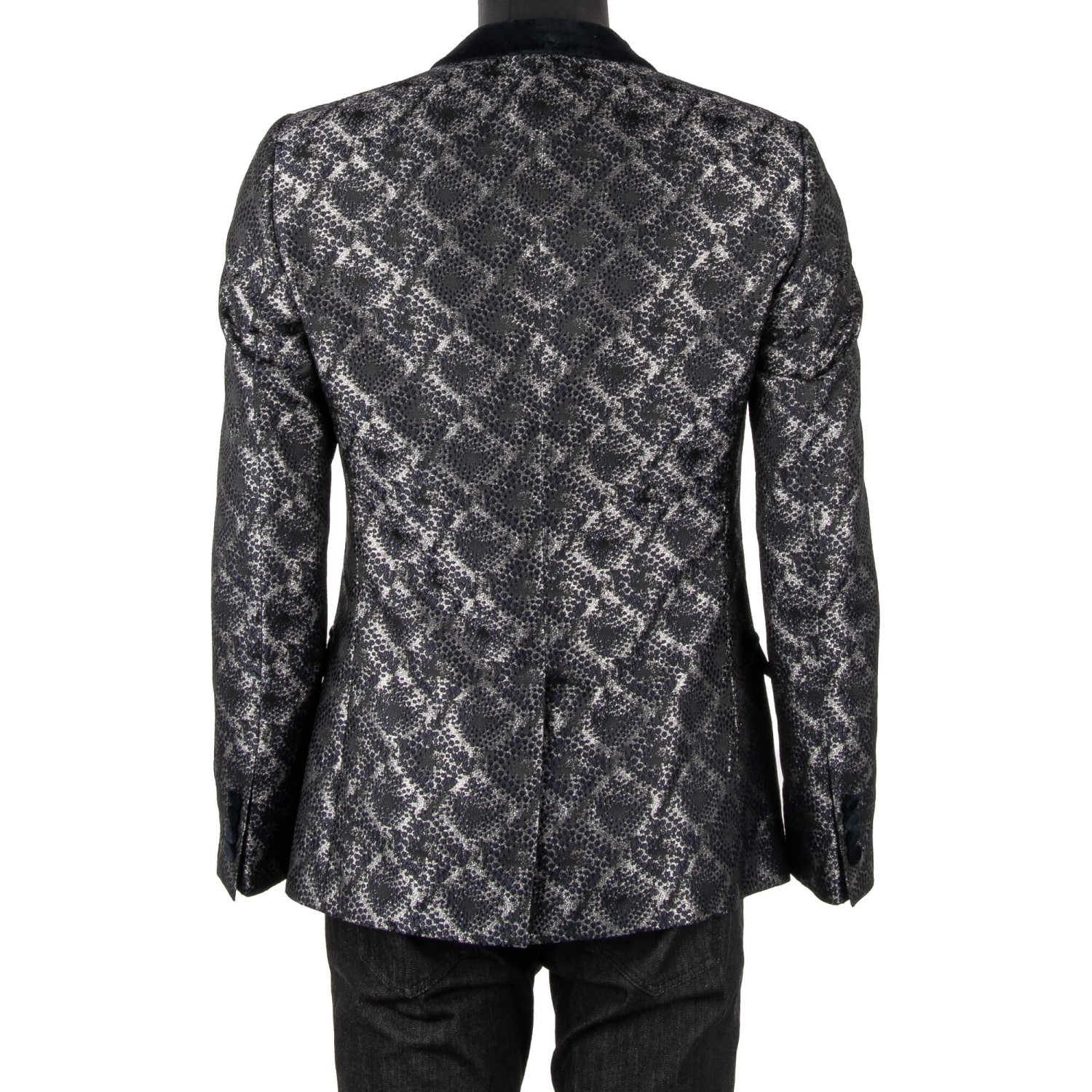 - Shiny lurex tuxedo / blazer GOLD in dark blue and silver with a contrast velvet shawl lapel by DOLCE & GABBANA