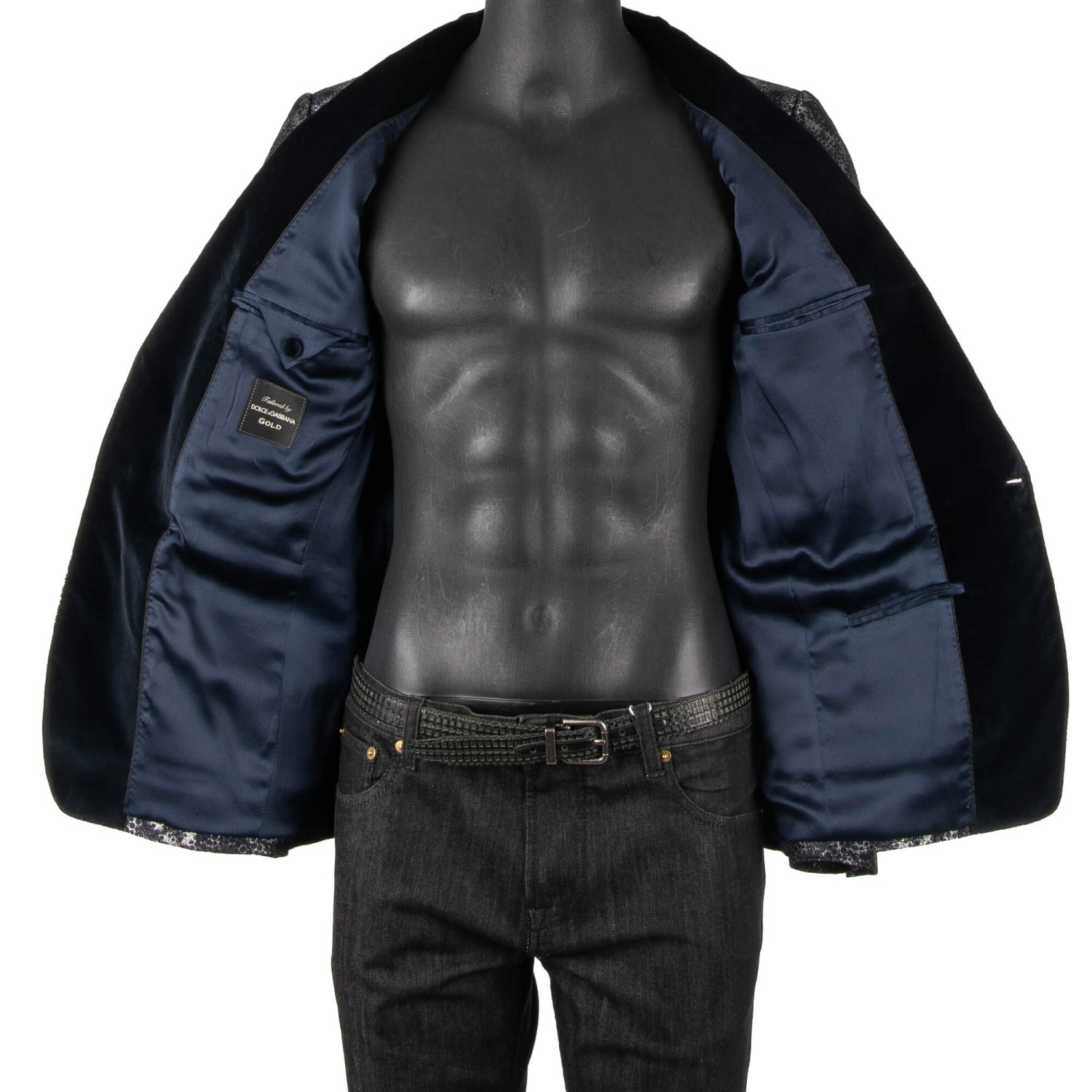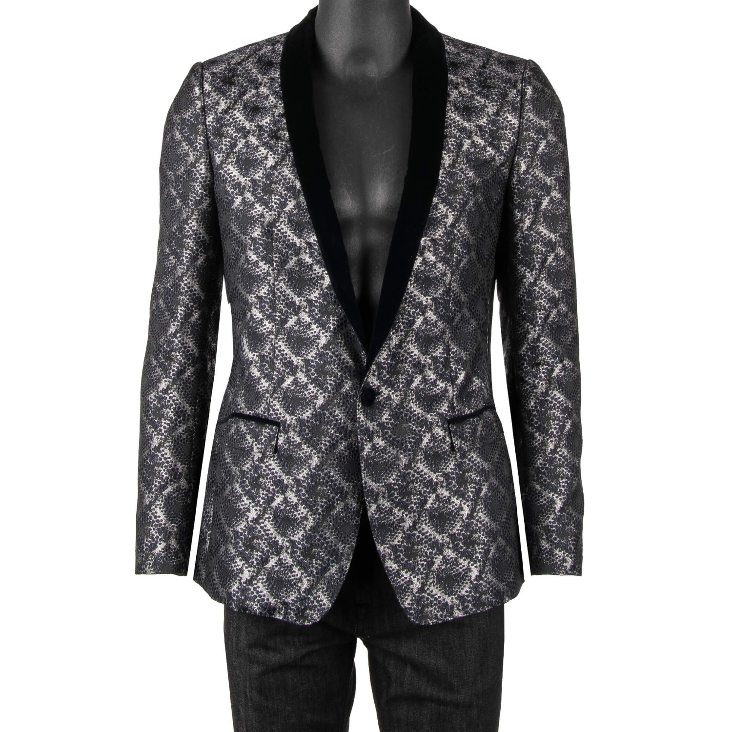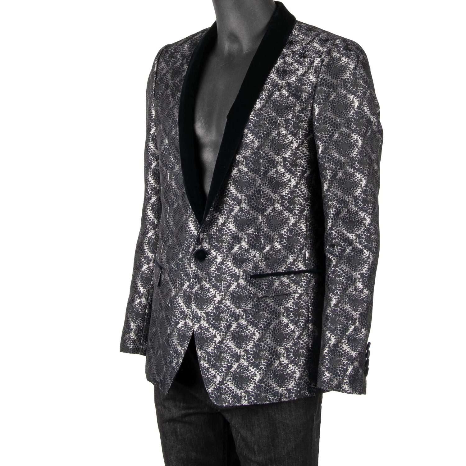 - Shiny lurex tuxedo / blazer GOLD in dark blue and silver with a contrast velvet shawl lapel by DOLCE & GABBANA