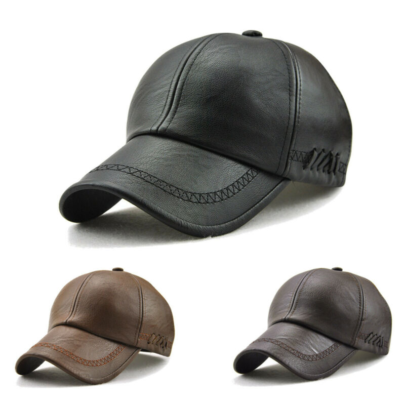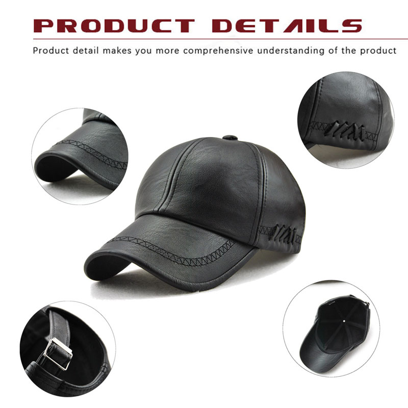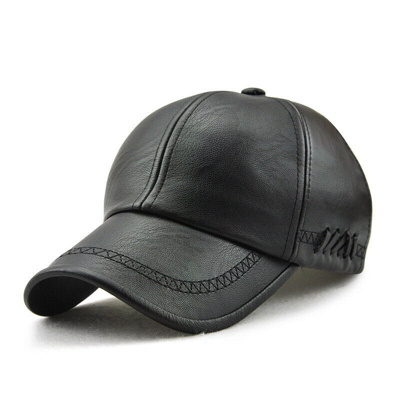 Men's Autumn Winter PU Lace-up Baseball Caps Outdoor Sport Warm Adjustable Leather Hats