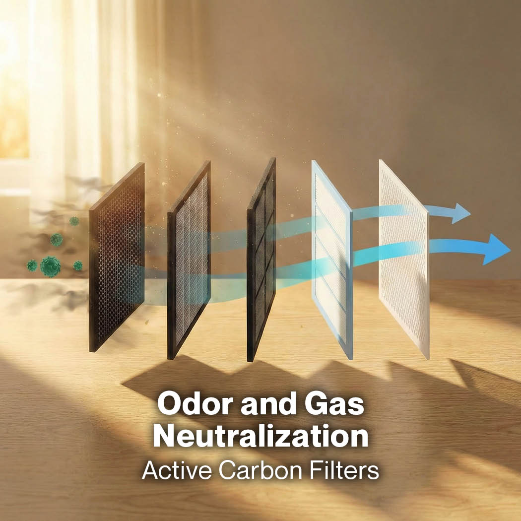 Active Carbon Filter: Breathe freshness, not fumes. The active carbon layer works tirelessly to absorb volatile organics and chemicals, making it perfect for homes exposed to traffic pollution or cooking odors.