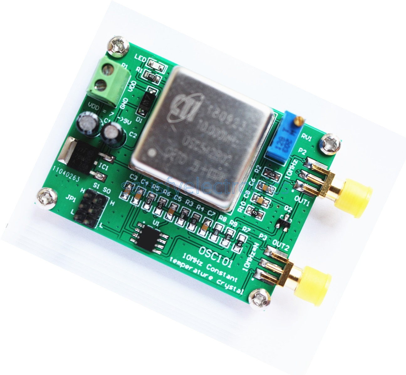 The different multipliers are selected by the JP1 jumper pin. Correct the deviation of the 10Mhz output frequency (+/-2.0ppm) with the RV1 potentiometer.