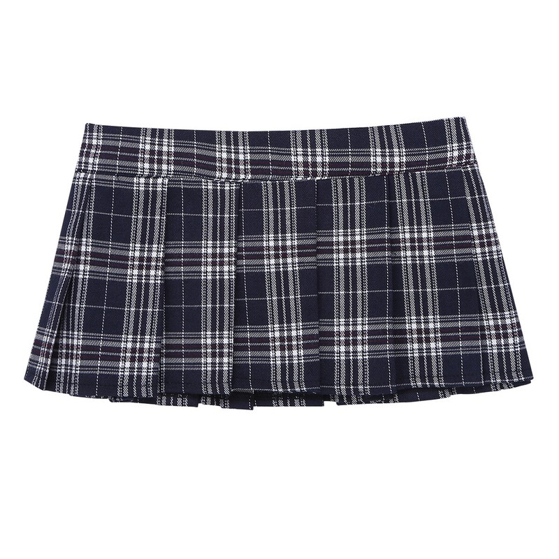 Women Japanese Schoolgirl Skirt Lingerie Low Rise Mini Plaid Pleated Skirt Dress