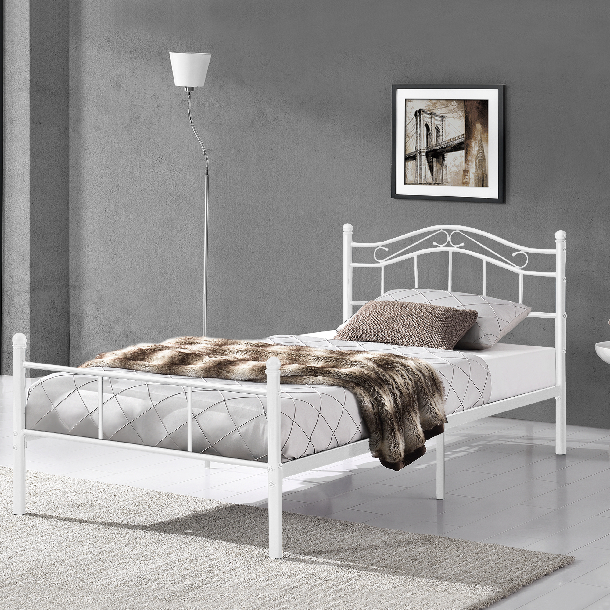 [en.casa] Metallbett 90x200 Weiß Bettgestell Bett Schlafzimmer Jugendbett