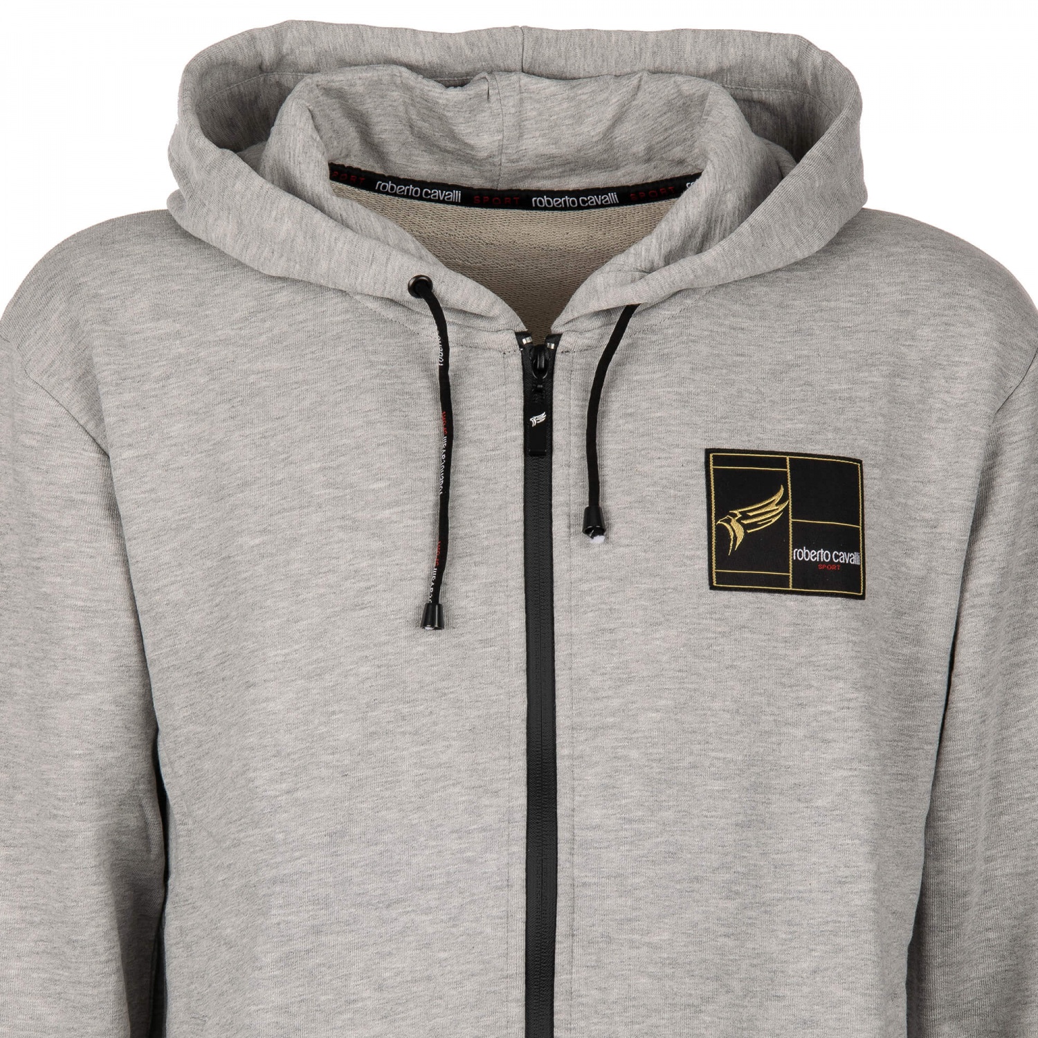 - Sweat à capuche en coton avec aigle peint et logo bouclier en gris par ROBERTO CAVALLI Sport