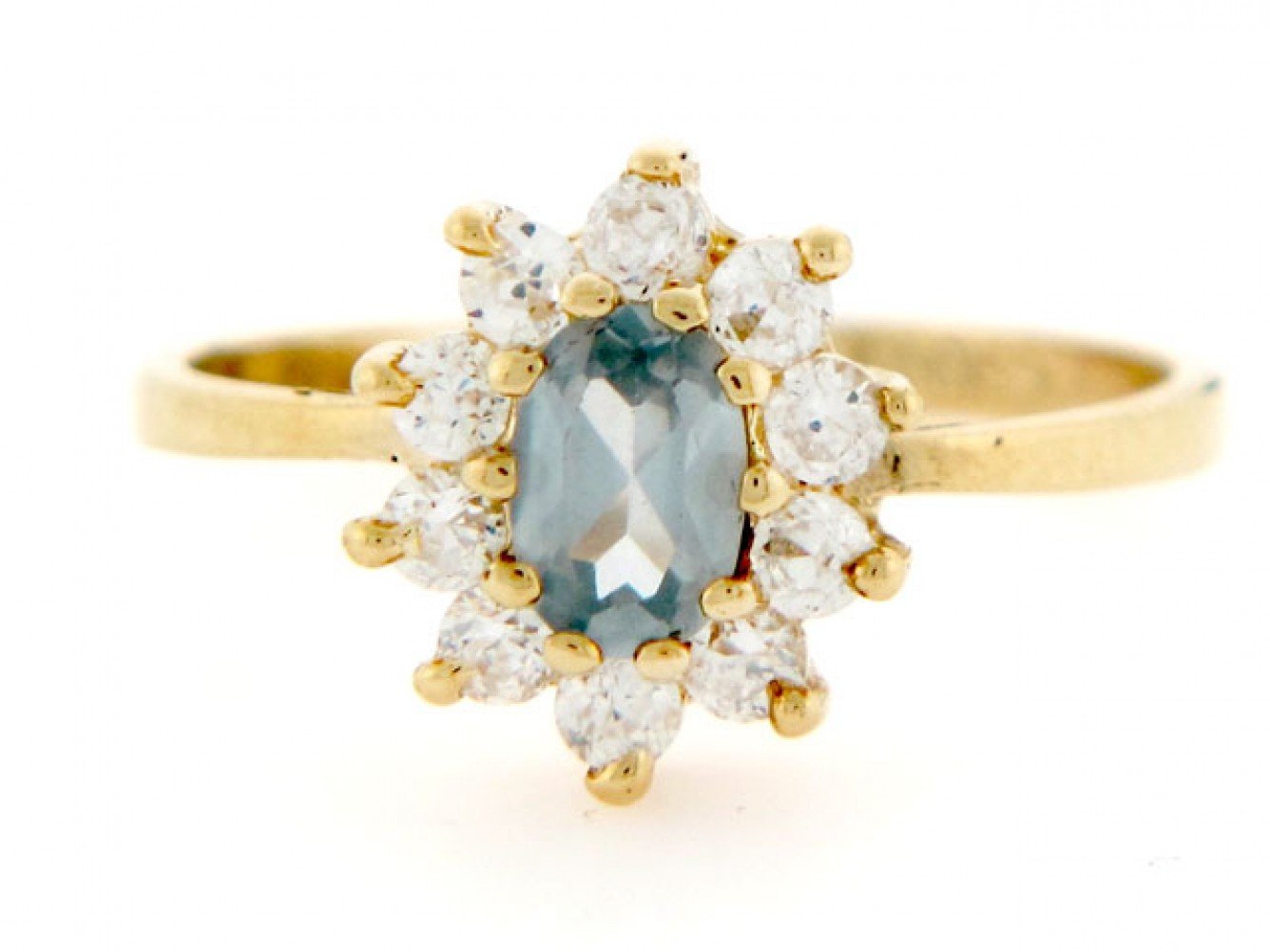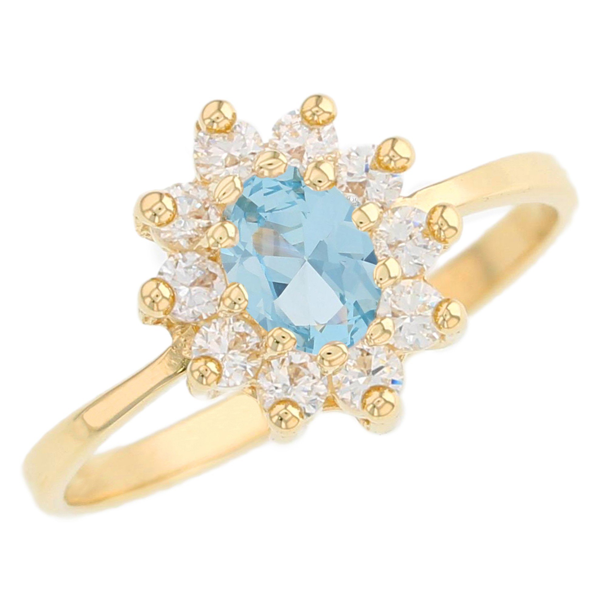 10k or 14k Gold Simulated Aquamarine March CZ Birthstone Ring