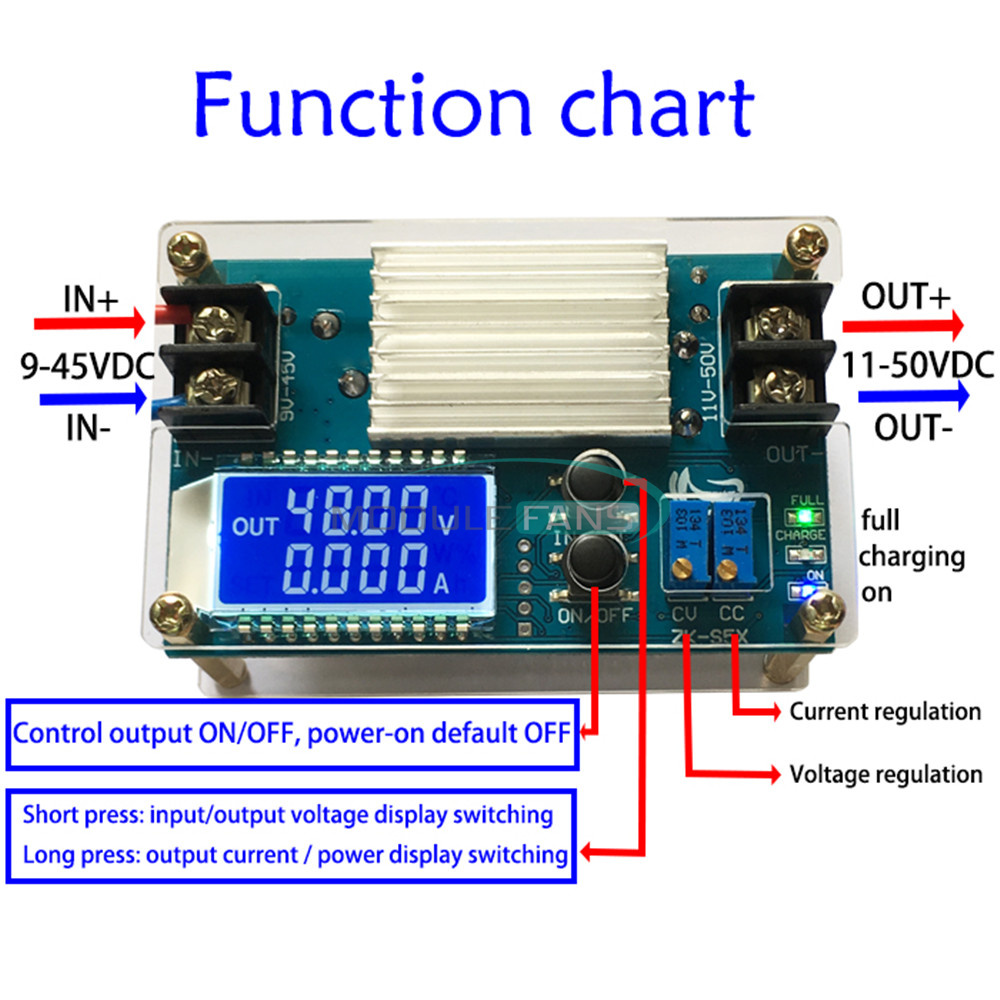 Output voltage: 11-50V, the factory default output is about 15V (the input voltage is higher than the output voltage, the ERR interface will be displayed, and the output voltage needs to be increased)