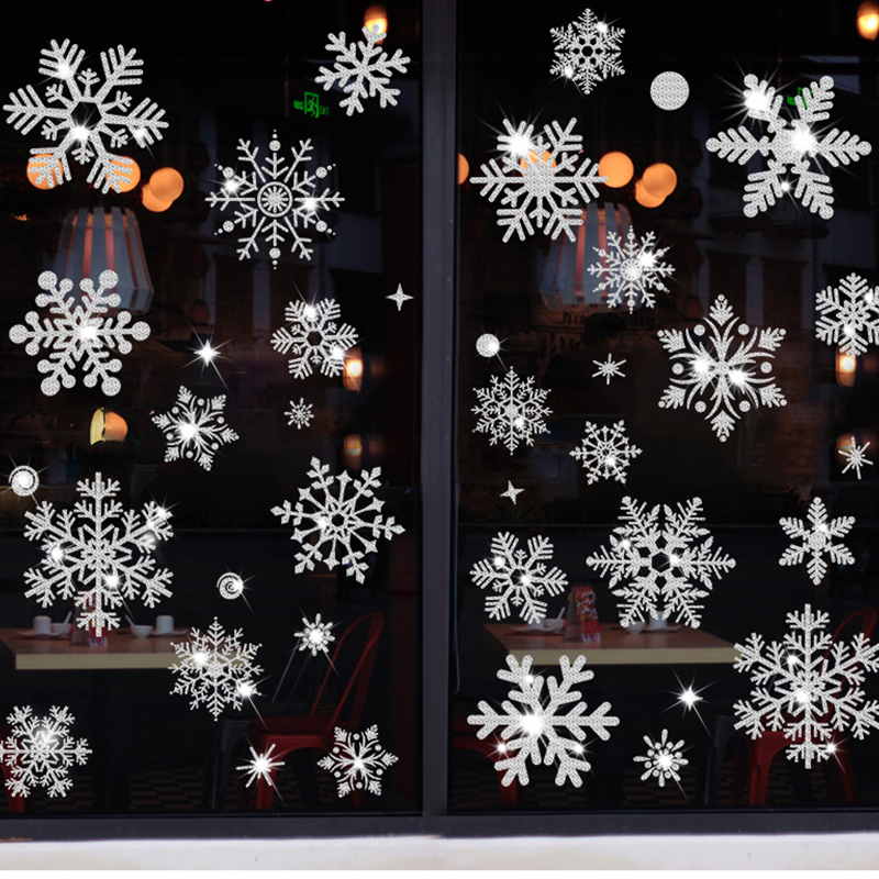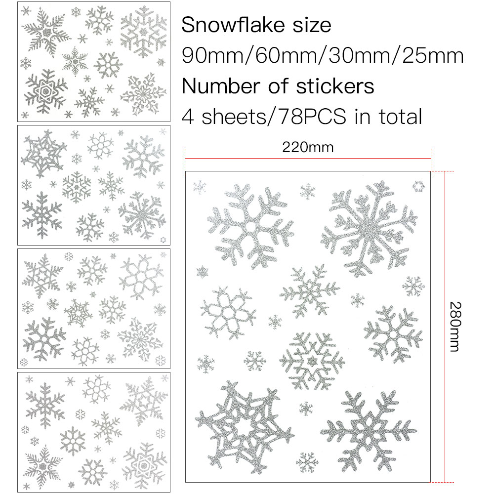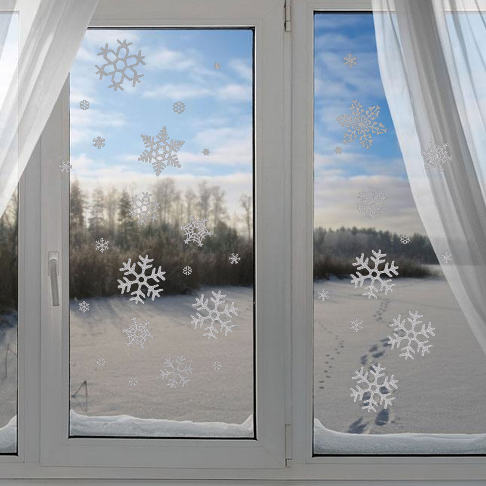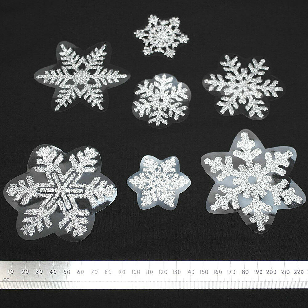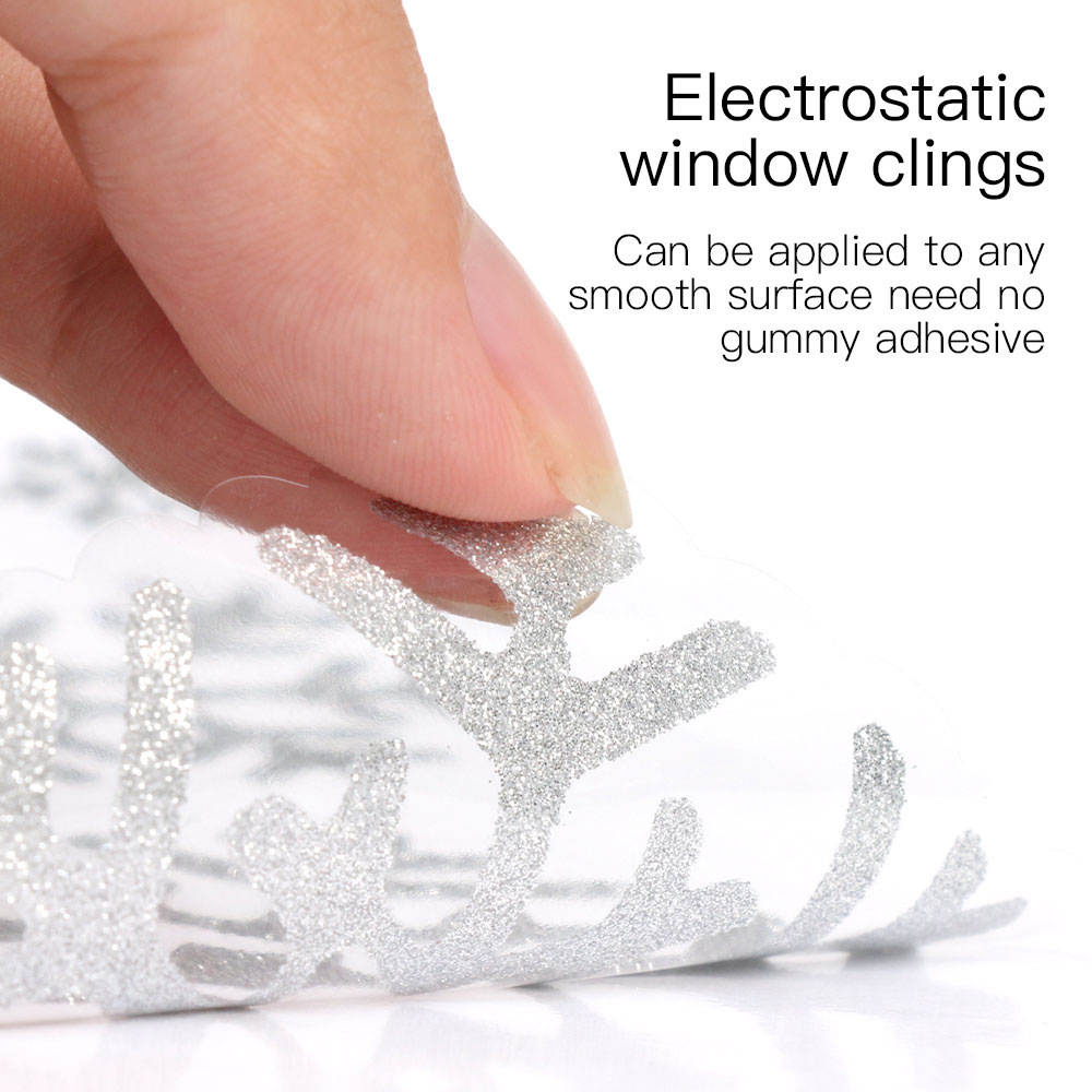 For window and other high shine surfaces.The snowflake clings are made from transparent self-cling static film, can be moved, easily taken down and reusable, they don't leave any marks on the glass, no glue.