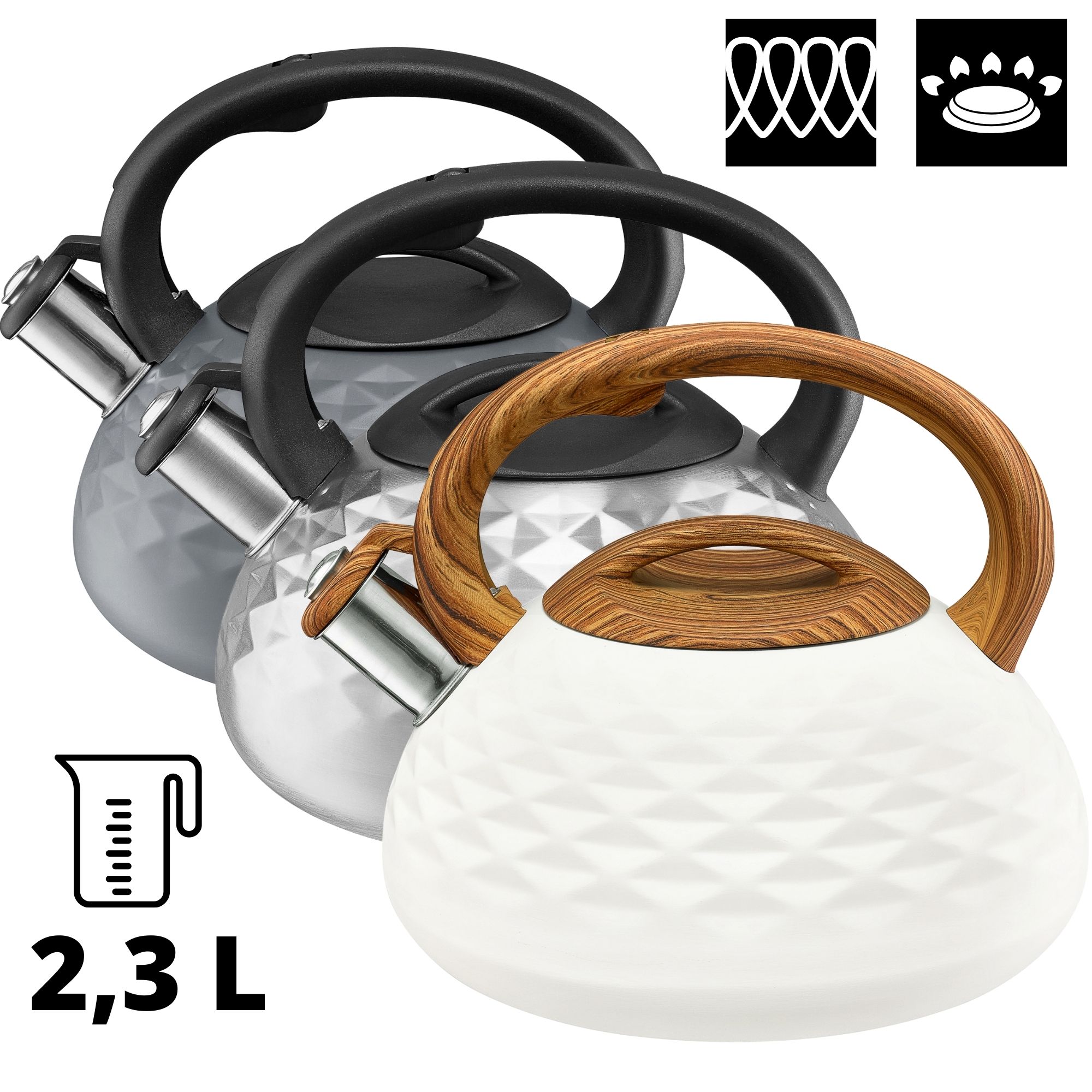 * Wasserkocher Fassungsvermögen von 2,3 L aus rostfreiem Stahl