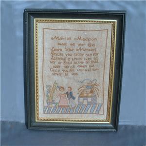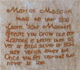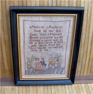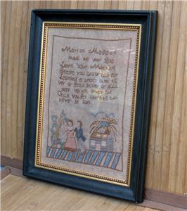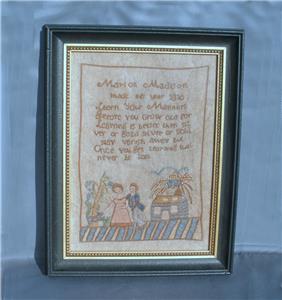 Antique 1830 Marion MADISON Framed Handmade Sampler Needlework Embroidery