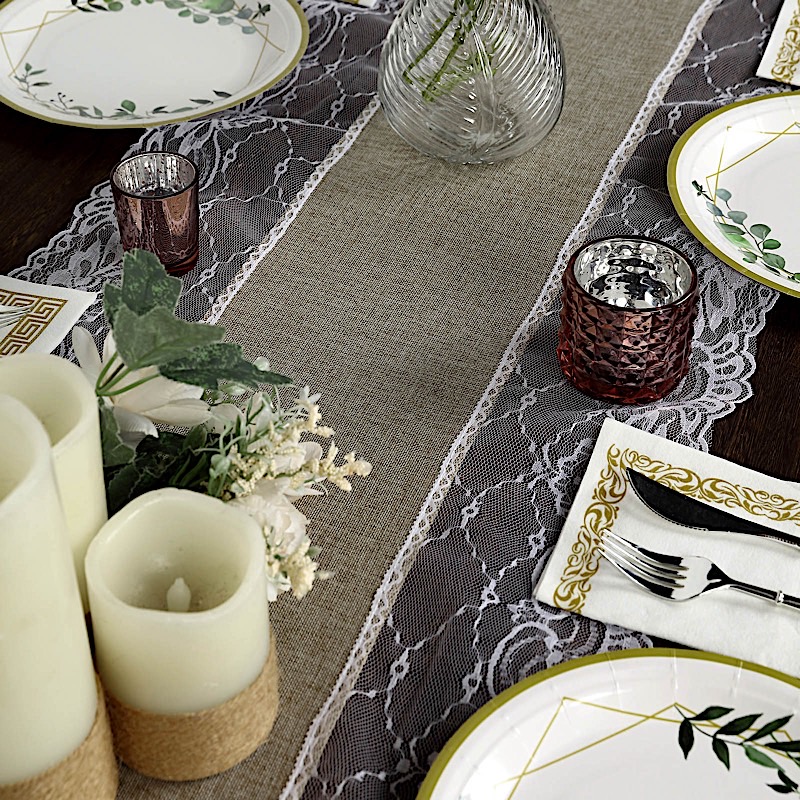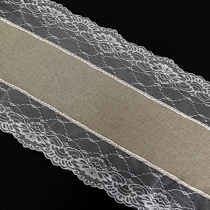 Material: Faux burlap fabric and lace.