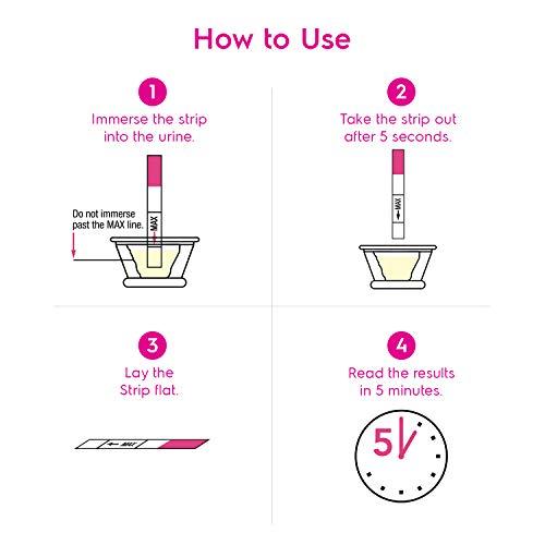 Get results in 3 simple steps. Immerse the pregnancy test strip for 10 seconds, lay the test flat for 5 minutes, then read your results. One line = Not Pregnant, Two Lines = Pregnant.