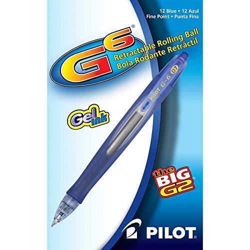 PILOT G6 Refillable & Retractable Gel Ink Rolling Ball Pen, Fine Point, Blue
