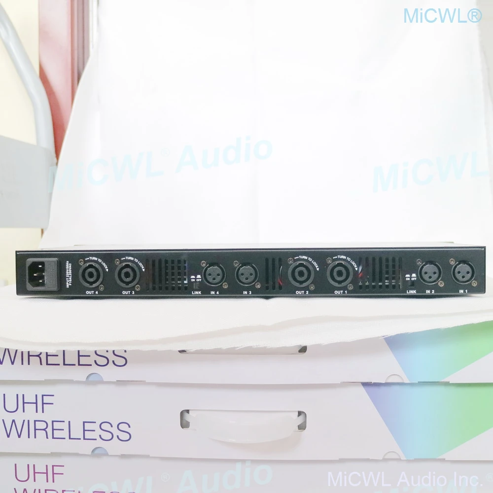 Input (CH1-2 , 3-4): XLR input connector; Output (CH1-2 ,3-4): SPEAKON output; Power: AC power Input (CH1-2, 3-4): XLR Input Connector; Output (CH1-2,3-4): SPEAKON Output; Power: AC power supply.