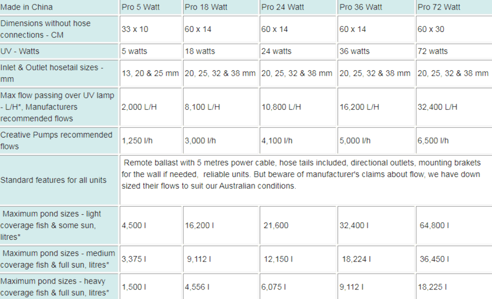 The Pro UV clarifier is effective for the long-term control of green water by exposing the pond water to ultraviolet (UV) light. It is a chemical free solution with no detrimental effects to the environment or water quality and ensures the destruction of algae and therefore ‘green water.’ To be more precise, the green water algae contained within the pond water is drawn into the UVC via a suitably sized pond pump. The UV lamp, located within a quartz sleeve, allows the UV light to penetrate the pond water as it flows through the casing. This UV light kills the single celled algae and as a result binds it together to form larger clumps. These algae clumps will then be removed from the water by a suitably sized pond filter. To ensure effective algae control the UV lamp must be replaced annually.