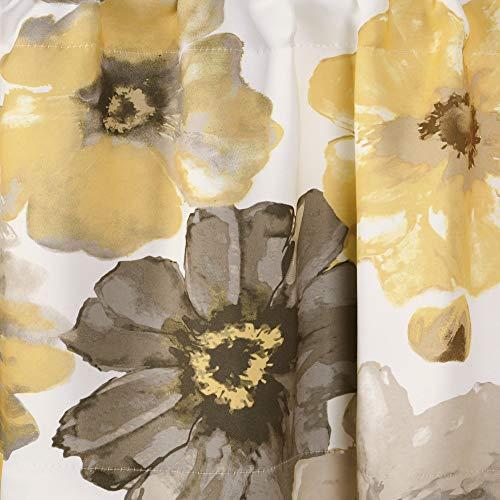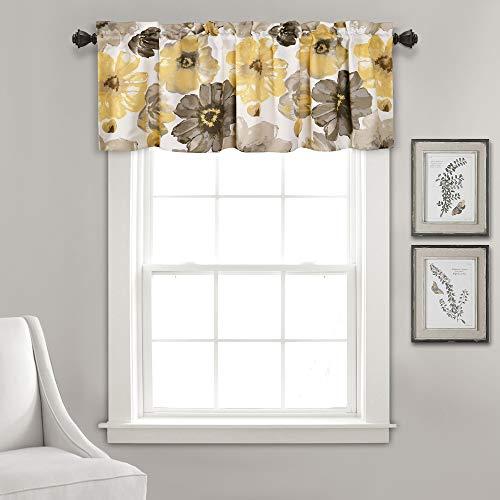 Large, blooming yellow and gray flowers adorn this floral window curtain valance