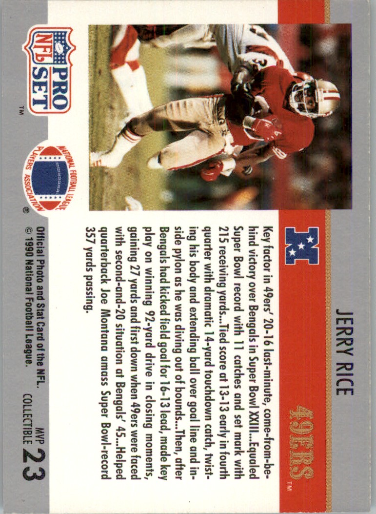 | 1990 Pro Set Super Bowl MVP Collectibles 23 Jerry Rice | ||||||||||||||||