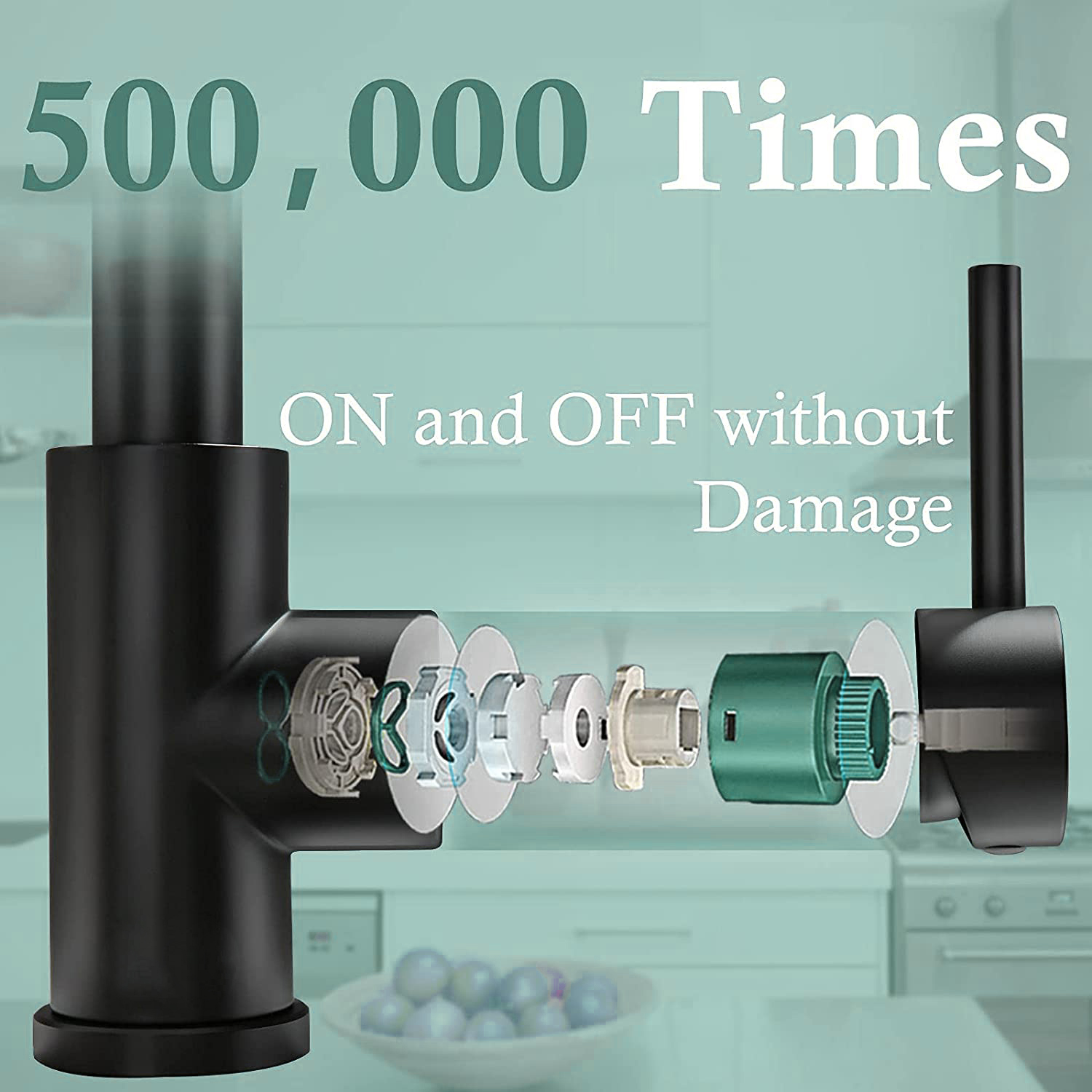 Easy to control over flow and temperature. Leak-proof kitchen sink faucet with high quality ceramic cartridge which has passed 500,00 cycle testing, assures a long time use of drip-free performace.