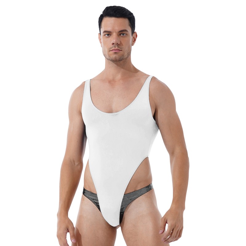 Men Wet Look Patent Leather Swimming Trunks Low Rise Drawstring Boxer Shorts Swimwear .