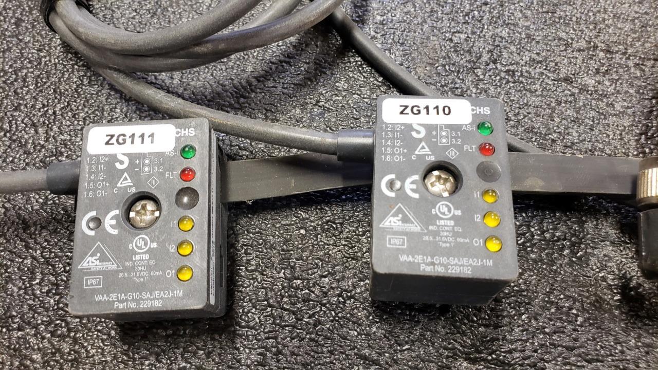 Here are some jumpered Pepperl + Fuchs VAA-2E1A-G10-SAJ.EA2J-1M safety interface modules. These were used for testing on some robotic conveyors. All three modules are included with jumper cables as shown.