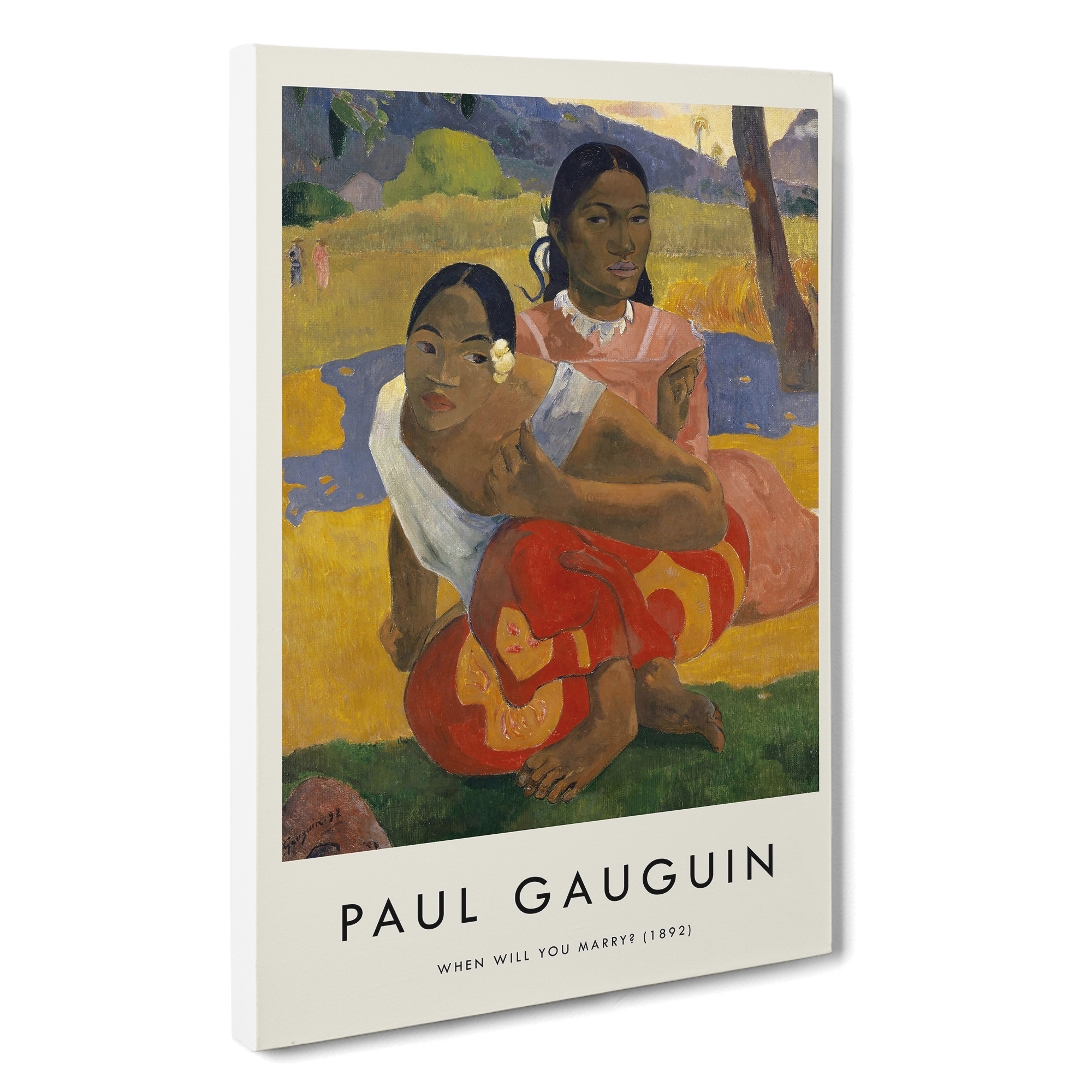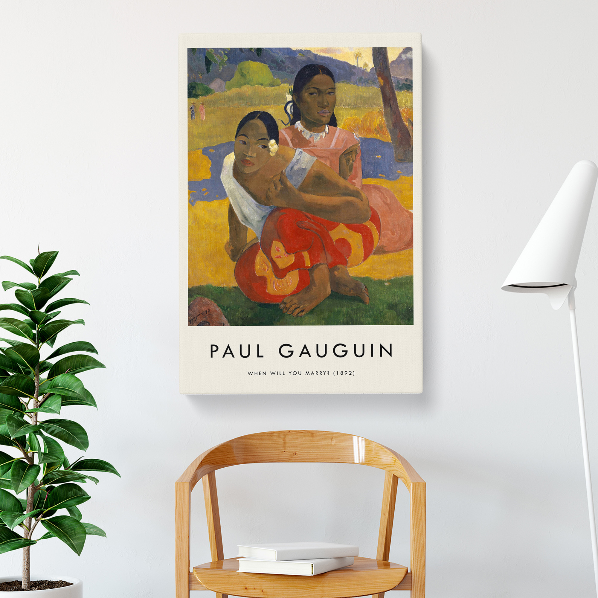 Transform your living space with our captivating canvas wall art prints. Designed to elevate your home decor, the stunning Nafea Faa Ipoipo by Paul Gauguin canvas print is crafted and framed in the UK, and boasts a contemporary gallery wrapped finish. Utilising high-quality inks and materials, the colours of the wall art print are rich, vibrant, and true to life. The canvas is stretched over a 30mm deep frame creating a stylish wall art picture that is ready to hang in your living room, lounge, bedroom, dining room and home office.