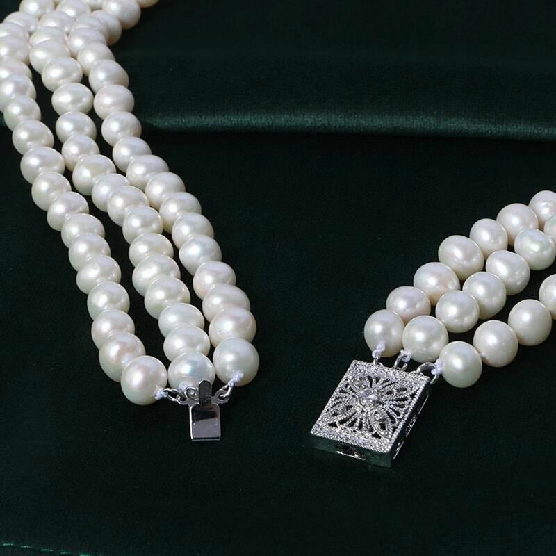 Triple strand 8-9 mm round natural south sea white pearl necklace