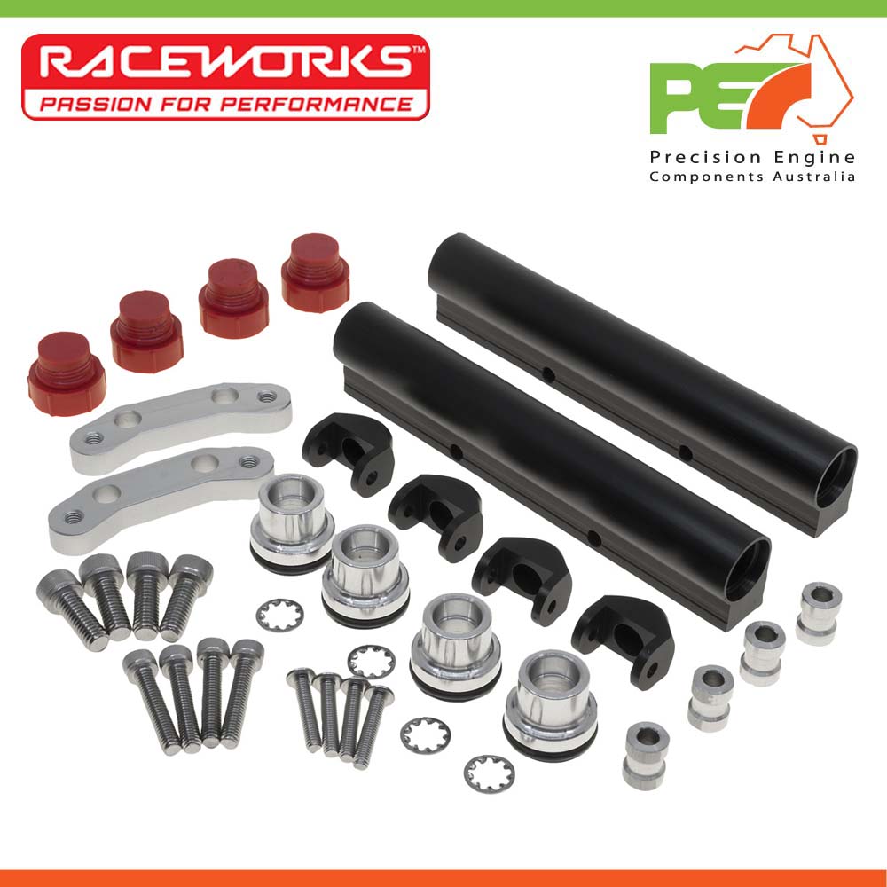 • Raceworks components include fuel pumps, silicone hoses, fuel rails, aluminium fittings, performance hose, fuel injectors, sensors, connectors and supporting hardware.