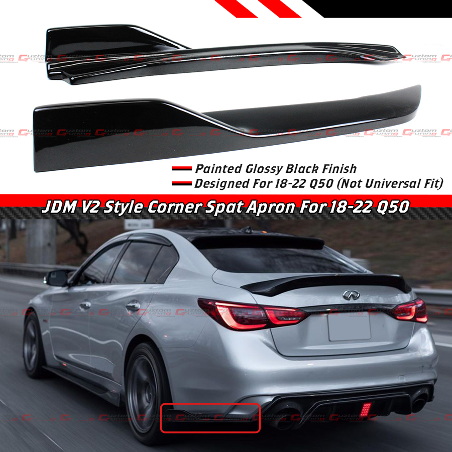 - Direct Add-On Style Rear Side Bumper Aprons. This is Specially Made For 2018-2023 Q50 Models. This is NOT the Universal Apron like others.
