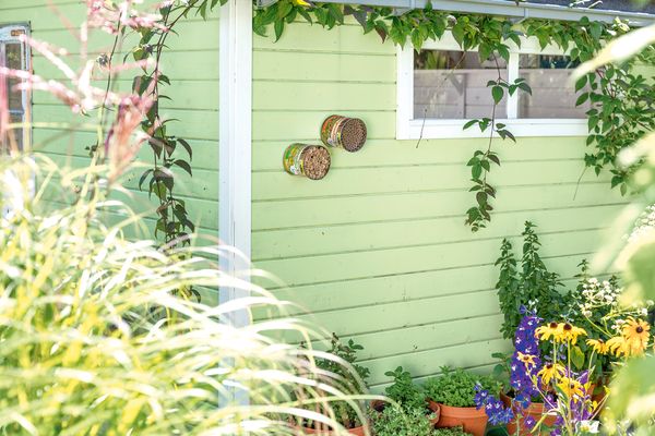 Weise Ihren Schädlingsbestand. Dieses Nützlingsquartier bietet Wildbienen und Grabwespen