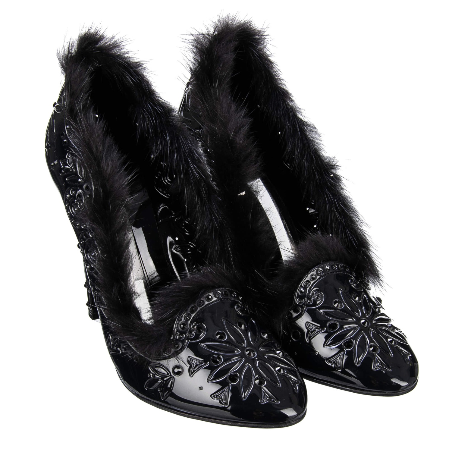 - Cinderella Pumps with mink fur made of PVC with crystals in black by DOLCE & GABBANA