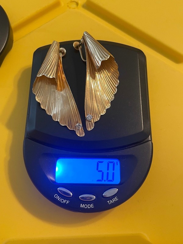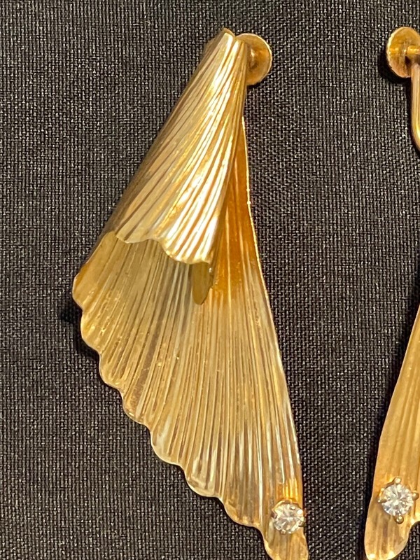 EXACT ITEM IS PICTURED ABOVE. EARRINGS MEASURE JUST OVER 2 INCHES IN LENGTH. EACH EARRING HAS A 1/4CT DIAMOND. SOLID 14KT YELLOW GOLD.