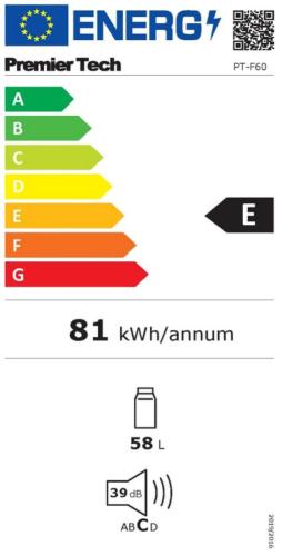 Il minifrigo PremierTech PT-F60 prevede una classe energetica E e offre un consumo ottimo di corrente durante il suo utilizzo.
