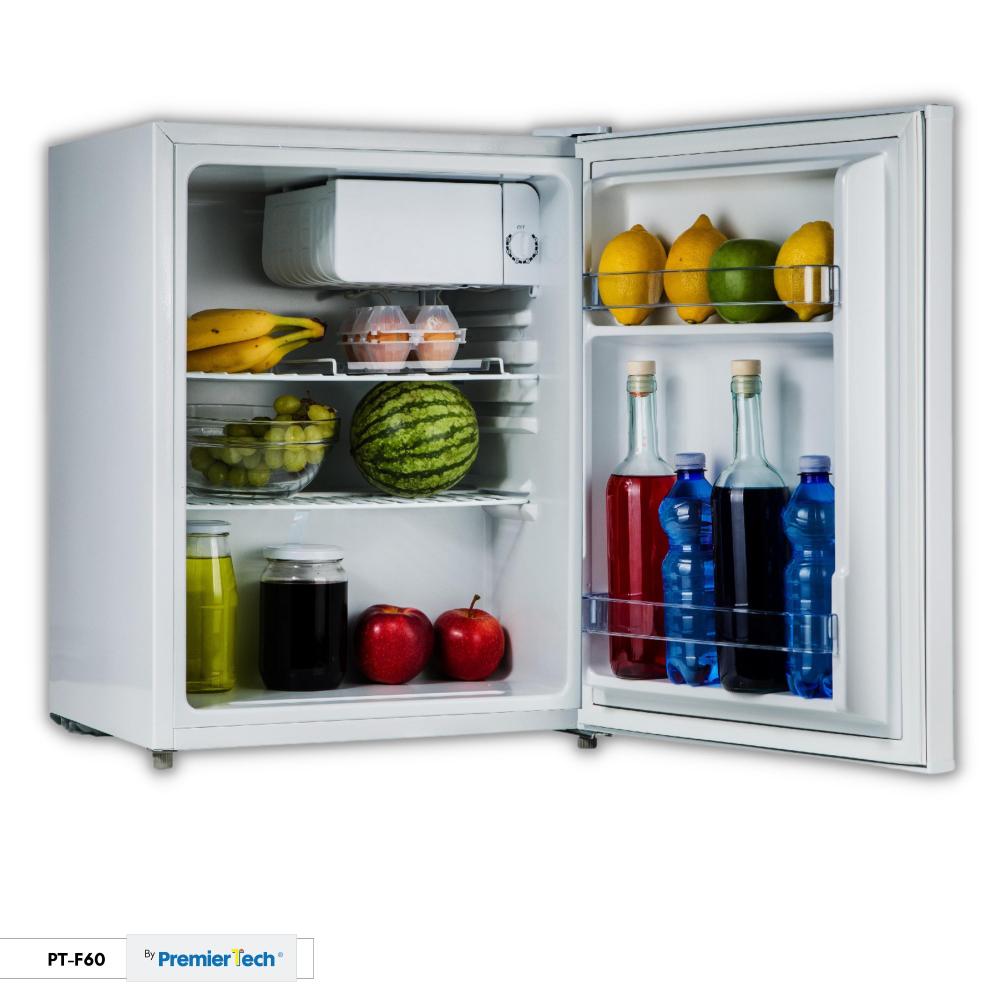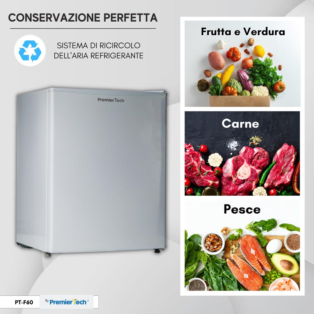 Il minifrigo PremierTech PT-F60 è compatto ma performante, adatto alle camere di hotel o agli uffici, per la conservazione di bevande fresche di piccole dimensioni e snack.
