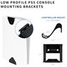Customize your gaming setup with 2-in-1 (Wall & Desk) Mount Designed for PS5 + 2 Controller Mounts (MOUNT-PS5C) from VIVO! The simple design of this versatile mount holds your PS5 in a safe, convenient location for all your gaming adventures. The bracket supports both horizontal (desk) and vertical (wall) orientation, and mounting hardware is included for wood stud, drywall, and under-desk installation. The open design keeps your PS5 from overheating, and a security lock provides maximum protection.Please Note: This mount is not compatible with PS5 Slim models.