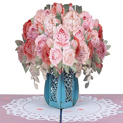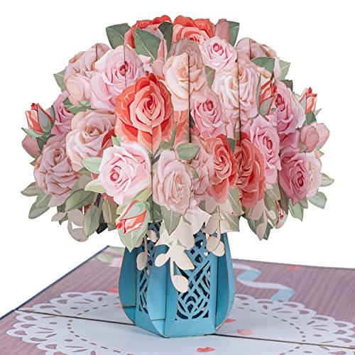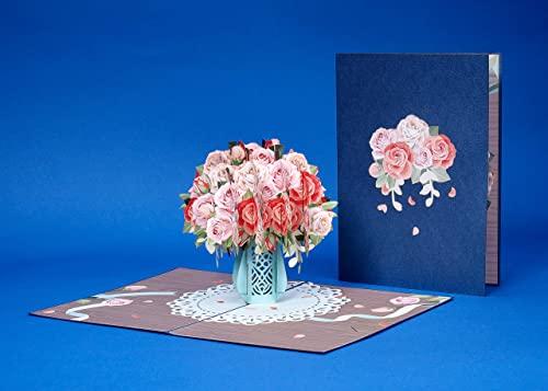 Paper Love Pink Roses Pop Up Card, Handmade 3D Popup Greeting Cards for Valentines Day, Mothers Day, Wedding, Anniversary, Love, Romance, Thank You, Thinking of You, Sympathy, All Occasion