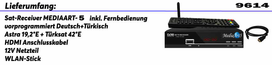 Mediaart-5 ist von uns mit der neuerste Software und mit allen neusten Frequenzen von den Satelliten ASTRA und TÜRKSAT vorprogrammiert (Deutsch/Türkisch)
