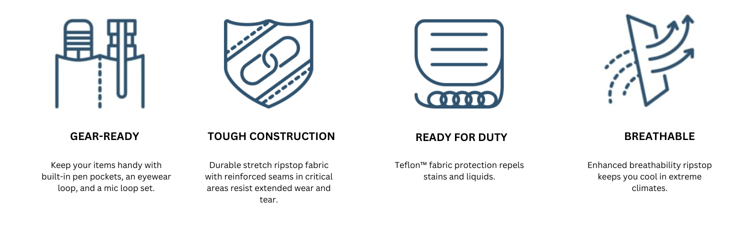 Fade-resistant and wrinkle-free, this shirt is ideal for indoor or outdoor use, hot weather, and active environments where performance and appearance matter.