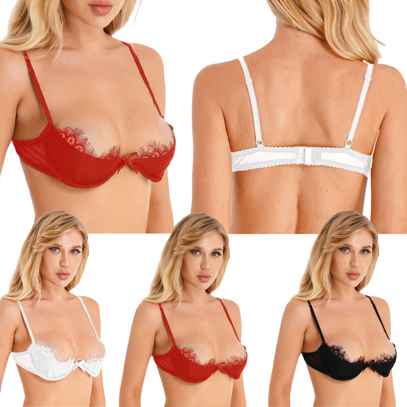 Womens Open Cups Underwired Lace Bra Lace-Up Adjustable Straps Brassiere.