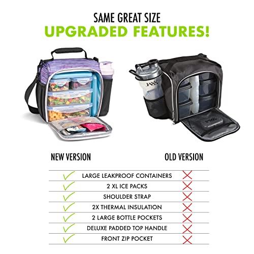 • THE PERFECT MEAL PREP BAG: The JAXX Meal Prep bag packs a powerful punch! It is the same compact size, but now fits 4 meal prep containers, 2 XL ice packs inside and 1 BPA Free shaker bottle with agitator to easily mix your drinks!