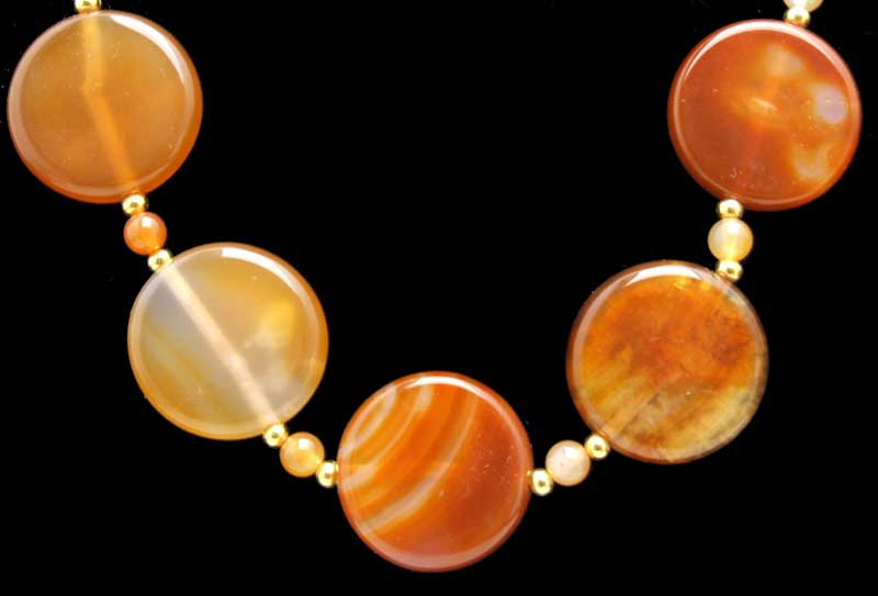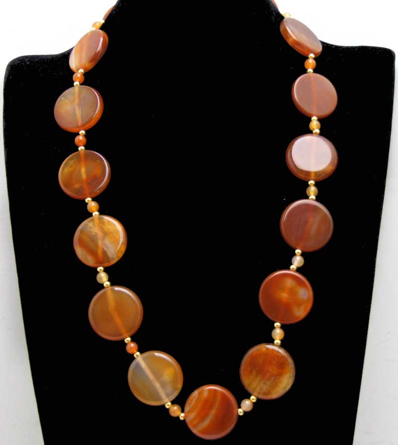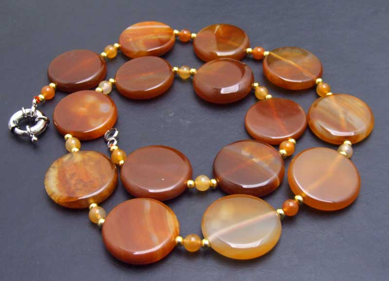 Stuff: SALE Big 28mm Coin Round Natural Red Striped agate and 6mm Round agate 25'' necklace -nec6423