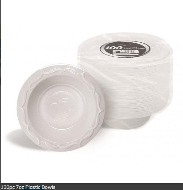 This pack of 100 7oz small plastic bowls is great value for money and is great for parties, camping and BBQs.