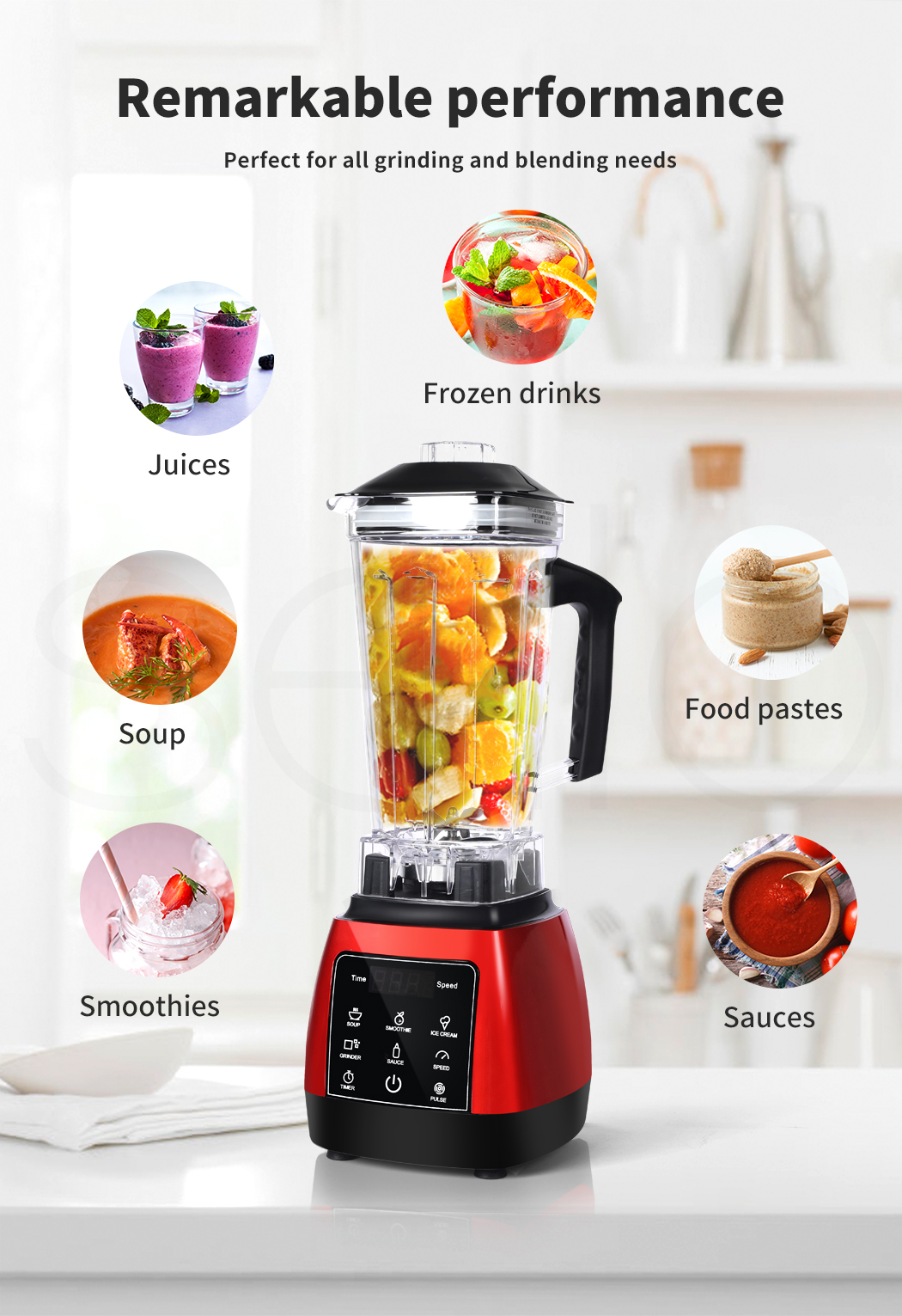 Your commercial blender only turns on when the jug is placed correctly. Put the secure lid on and blend up a storm. Use your blender for hot or cold food. Mix up a perfect pumpkin soup.