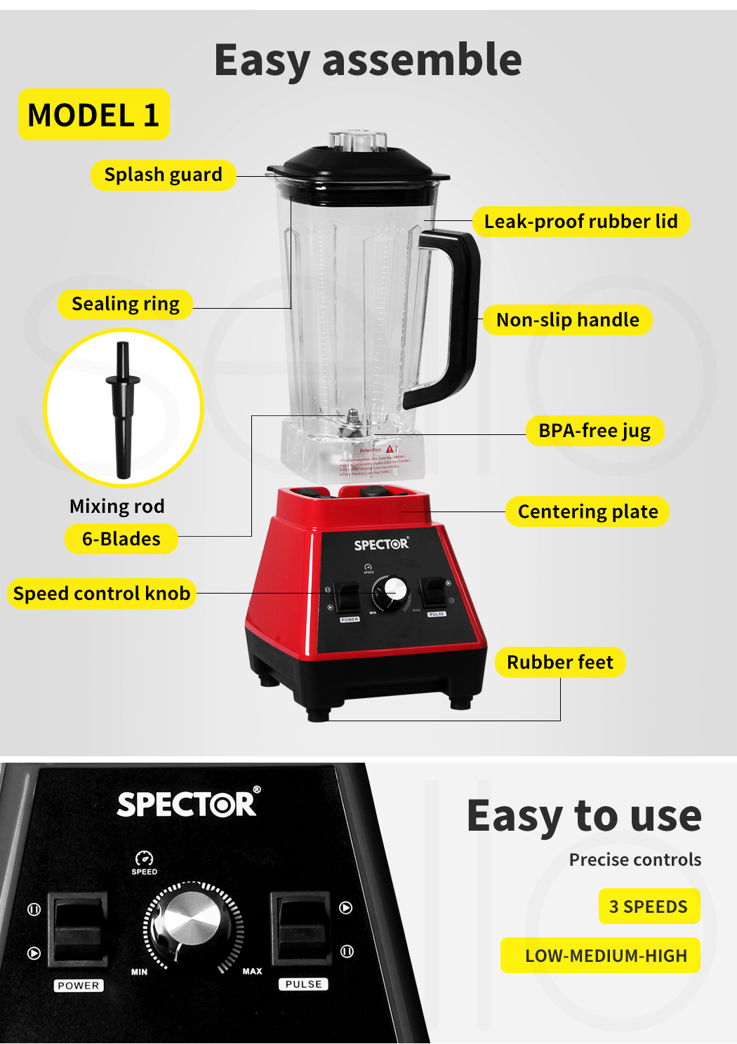 - Non-slip handle and rubber feet