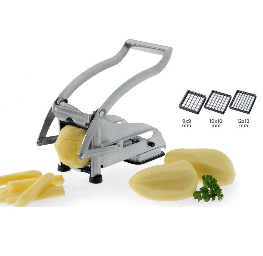 Der EVA Pommes Schneider zeichnet sich durch seine ergonomische Bauweise aus, die eine mühelose Anwendung garantiert. Die scharfen Klingen aus rostfreiem Edelstahl sorgen nicht nur für präzise Schnitte, sondern sind auch leicht zu reinigen. Durch die rutschfeste Basis bleibt der Schneider während der Benutzung stabil auf der Arbeitsfläche stehen, was zusätzliche Sicherheit bietet.